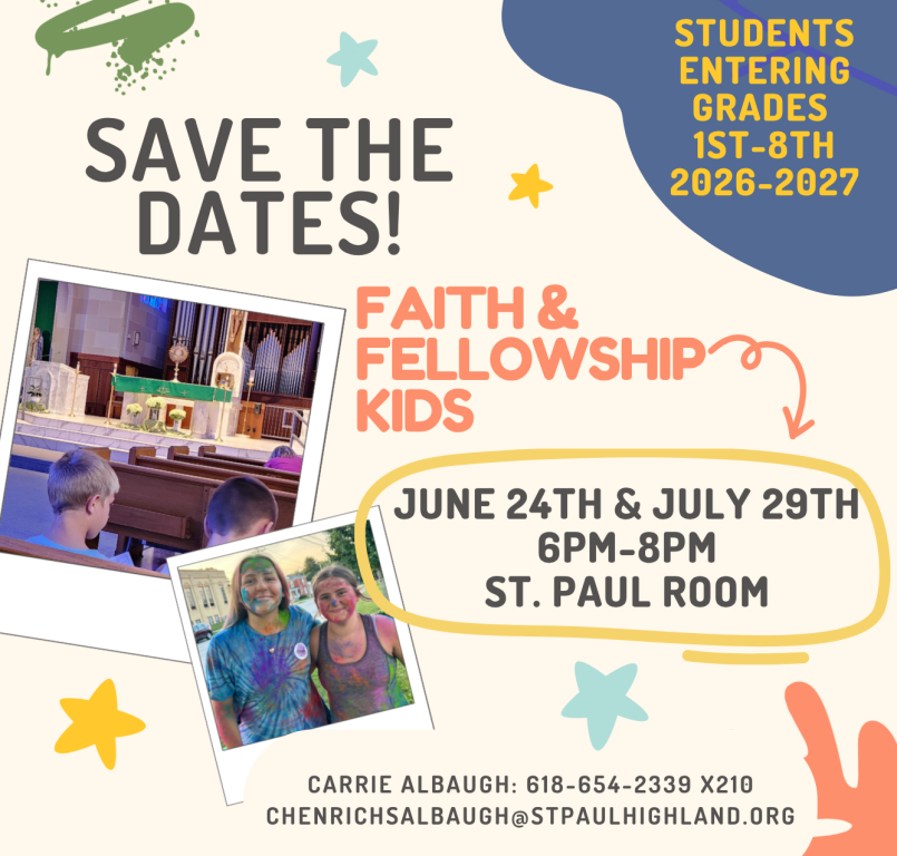 St. Paul's VBS for 2026 is Rome, happening July 6th-10th from 8am-11:30am.